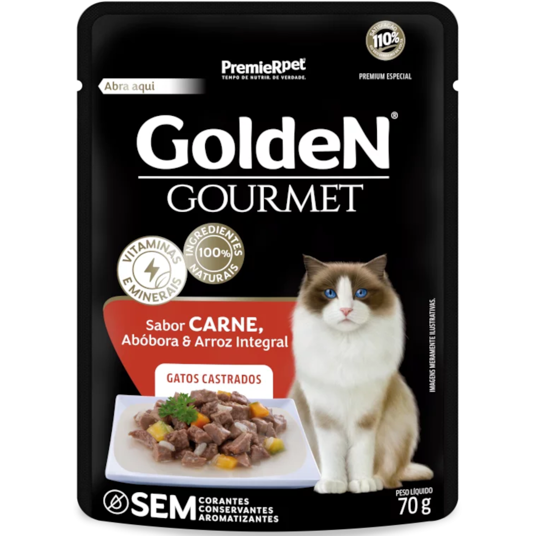 Alimento completo úmido para gatos adultos e filhotes a partir de seis meses.