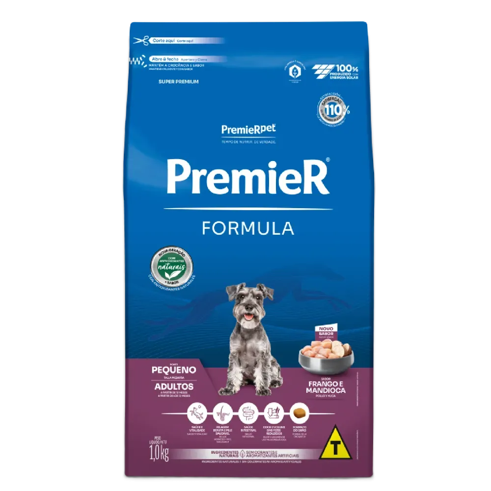 Alimente seu cão com a ração Premier Formula, desenvolvida para raças pequenas adultas, com sabor frango e mandioca para uma nutrição completa e saborosa.