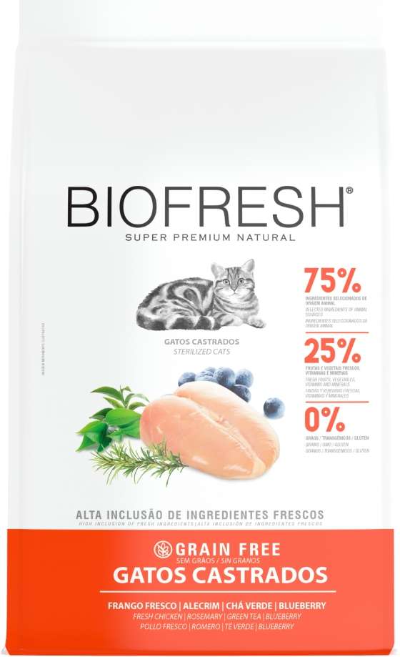 Alimento completo e natural para gatos castrados, com alta inclusão de ingredientes frescos que ajudam na saúde e bem-estar.
