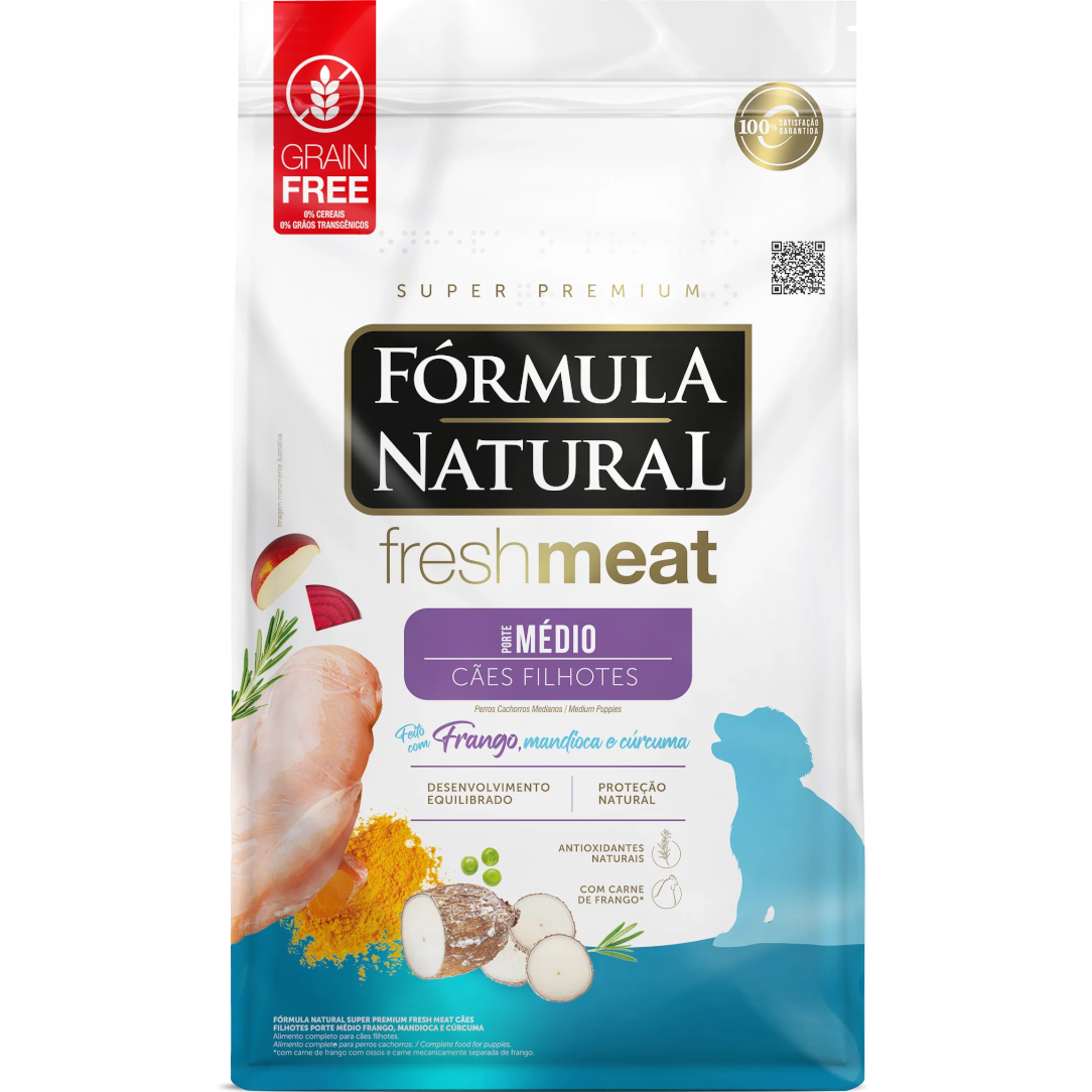 Carnes selecionadas (mín. 16% – carne de frango, carne mecanicamente separada de frango e fígado de frango), farinha de vísceras de aves, farinha e fécula de mandioca (mín. 15%), ervilha moída desidratada, fécula de batata, óleo de aves, óleo de salmão, hidrolisado de fígado de aves e miúdos de suínos, fibra de cana de açúcar, frutas e vegetais desidratados (manga, maçã, cenoura, tomate), polpa desidratada de beterraba, linhaça, cloreto de sódio, farinha de algas Schizochytrium sp., parede celular de levedura, frutooligossacarídeos, inulina, zeolita, extrato de yucca (0,04%), colágeno hidrolisado (0,05%), sulfato de condroitina (0,01%), sulfato de glicosamina (0,03%), vitaminas (retinol, colecalciferol, acetato de DL-alfa-tocoferol, bissulfito sódico de menadiona, ácido ascórbico, tiamina, riboflavina, piridoxina, cianocobalamina, biotina, pantetonato de cálcio, ácido fólico, niacina, cloreto de colina), minerais ( sulfato de ferro, sulfato de manganês, sulfato de zinco, iodato de cálcio, selenito de sódio, sulfato de cobre, proteinato de zinco, levedura enriquecida com selênio, proteinato de manganês), cloreto de potássio, lisina, metionina, taurina, ácido propiônico, extratos de chá verde e alecrim, cúrcuma (0,01%), concentrado de tocoferóis (antioxidante natural) (0,01%).
