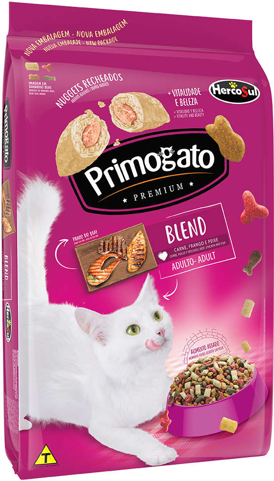 Alimente seu gato com equilíbrio e sabor. Primogato Premium oferece uma mistura especial para gatos adultos, focando em saúde e vitalidade.