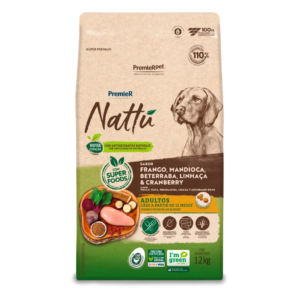 Conteúdo da embalagem: 1 saco de 12 kg de ração Premier Nattu.