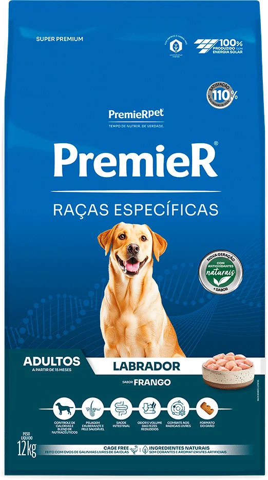 A ração apresenta controle rigoroso de qualidade e é produzida com fonte natural de antioxidantes, garantindo alimentos saudáveis. Embalagem econômica de 12 kg ideal para consumo frequente. Indicado para cães adultos da raça Labrador, ajudando no controle de peso e na manutenção da saúde geral do animal.