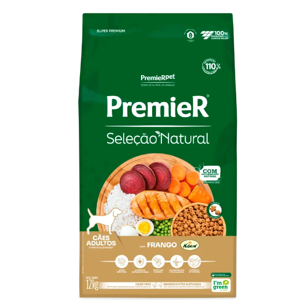 A ração vem em embalagem de 12 kg, garantindo praticidade para uso contínuo. Desenvolvida para cães adultos, oferece ingredientes livres de corantes e conservantes artificiais, priorizando o bem-estar do animal com componentes naturais e cuidadosamente selecionados.