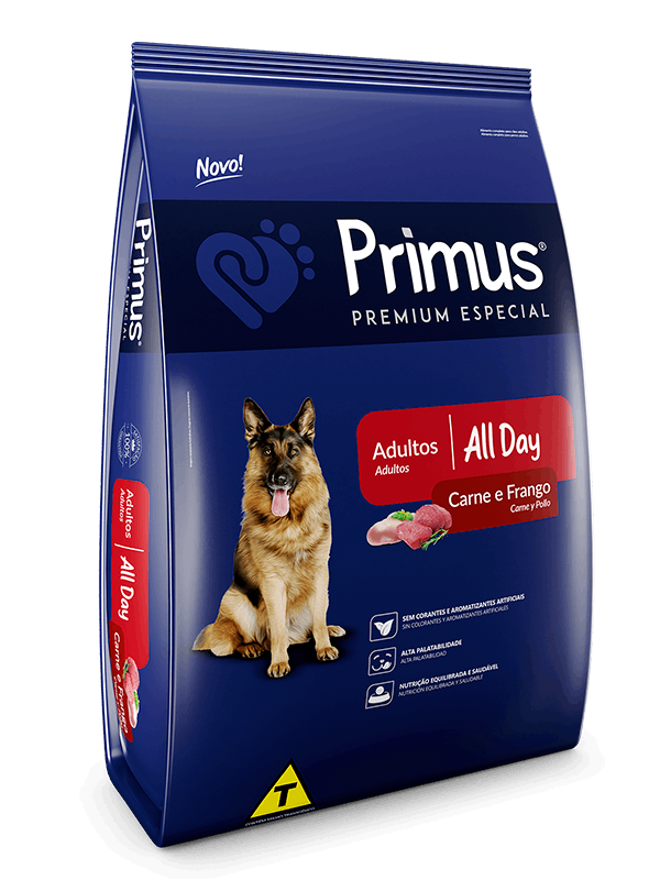 A Primus Premium All Day Carne e Frango é uma ração completa que oferece a nutrição ideal para cães adultos com ingredientes de alta qualidade.
