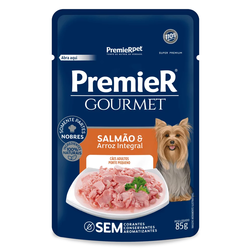 Água, salmão (37%), arroz integral (3%), goma guar, niacina, ácido pantotênico, riboflavina, piridoxina.